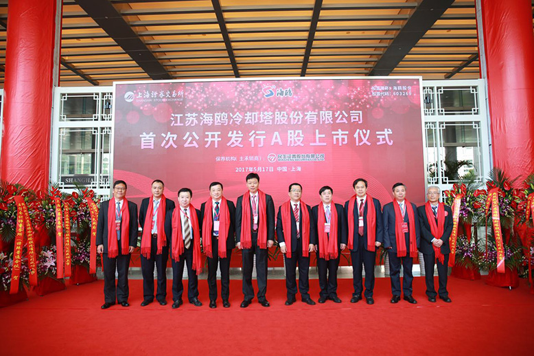 Jiangsu Seagull Cooling Tower Co., Ltd. announced the issuance of 22.87 million ordinary shares (A shares). The listing ceremony was officially held in Shanghai Stock Exchange on May 17, 2017, and the issue price was 8.76 yuan/share. The stock is called "Haiou Shares" for short, and the stock code is "603269"